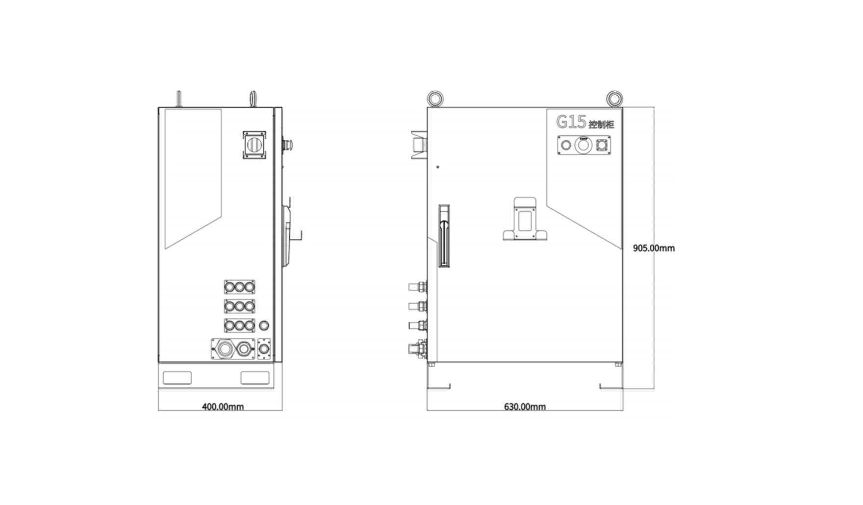分为电源室和控制室。电源室主要集中发热器件,采用多组风扇+风道设计,保障发热器件良好散热。控制室与电源室隔离,避免粉尘,油污进入控制室,保障控制室清洁,避免制室内器件受到粉尘、油污影响导致工作异常。