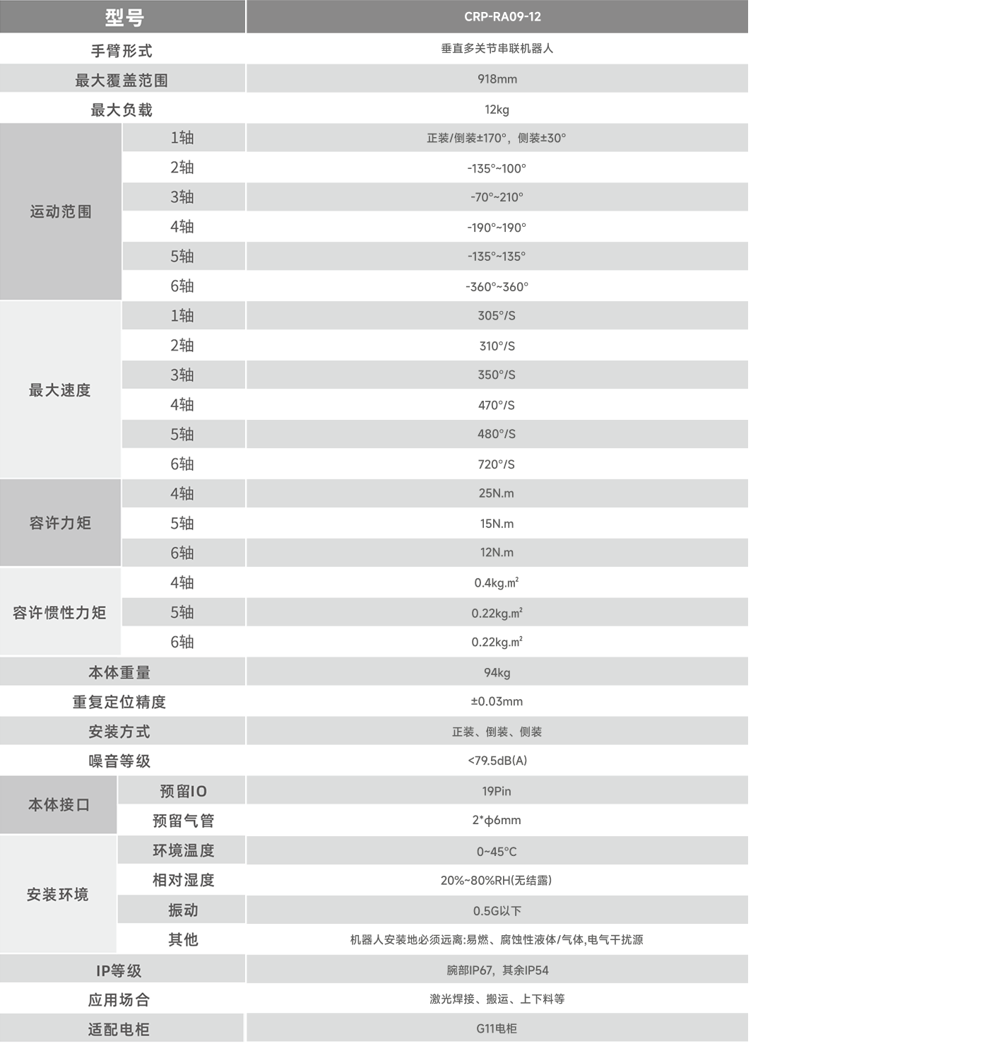 RA09-12系列相比RA09A-07系列左右速度提高了30%,标准门型轨迹0.42S,重复定位精度士0.03mm,实现快速生效,提高生产产能。